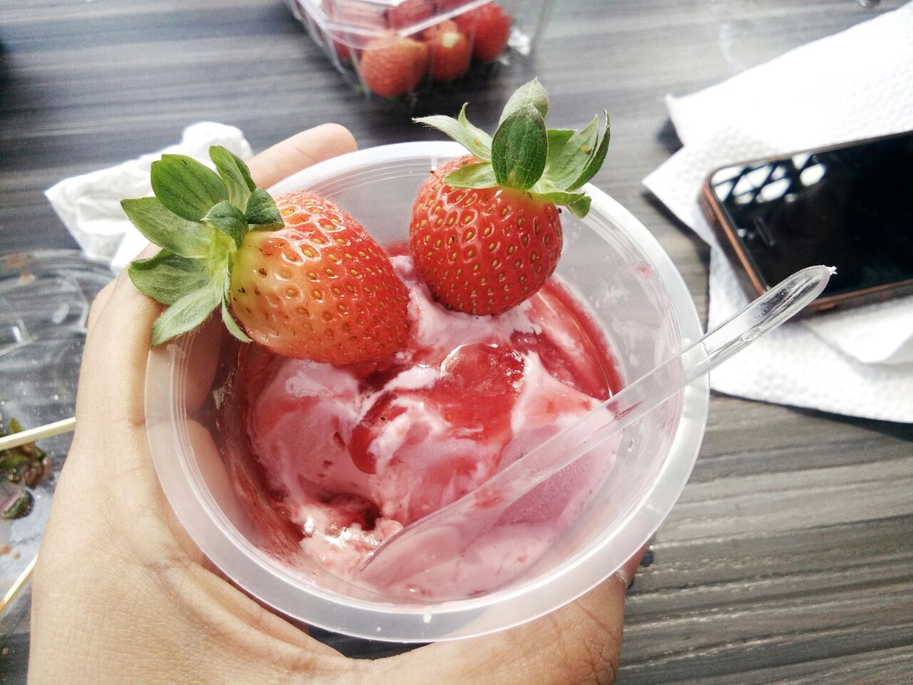 Aiskrim strawberry cameron. Yg paling penting buah segarr elokk tak lembik nahh ampa. Antaranya ialah waffle strawberry dan ais krim. Buah Premium Grade A.