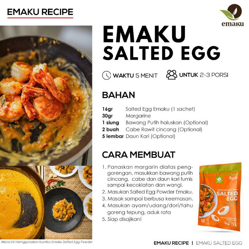 Emaku Salted Egg is a multi-purpose ingredient for cooking endless innovative salted egg dishes. Lastly masukkan ayam tadi. Salty with strong aroma of Salted Egg York Suitable For.