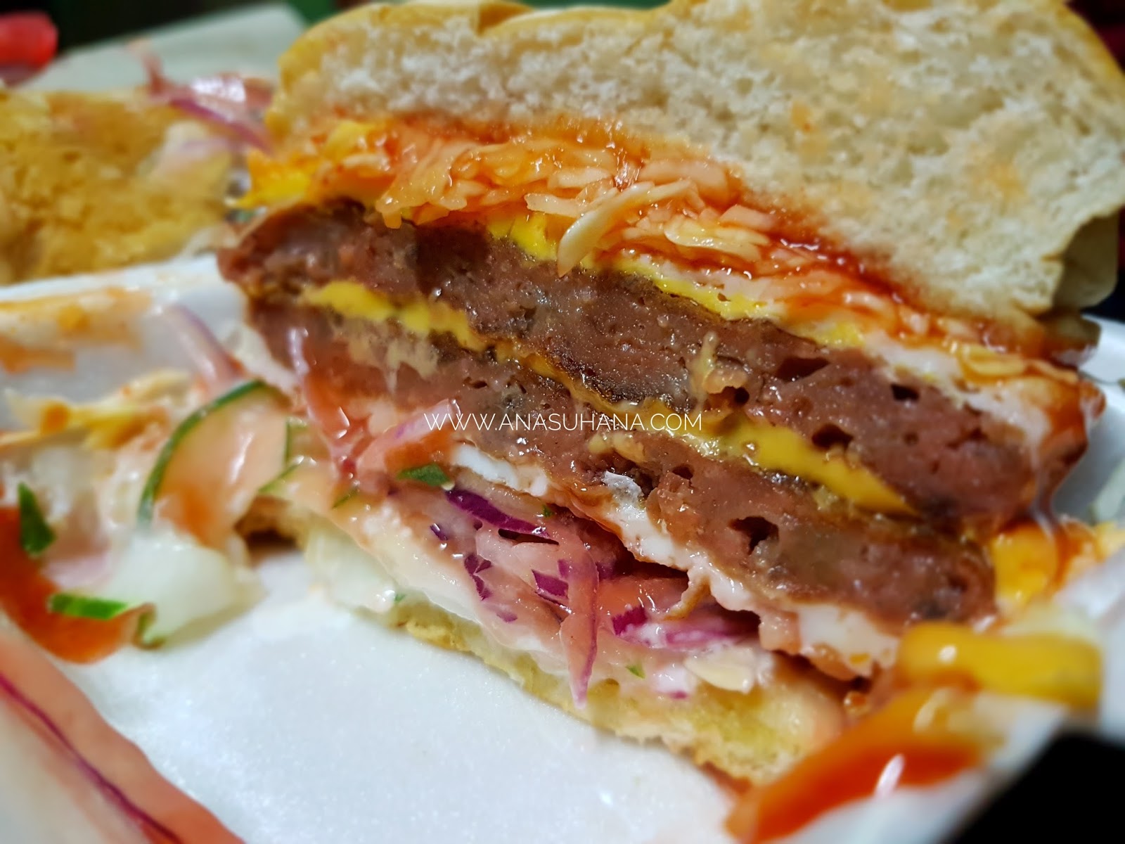 The patty is first wrapped in a thin layer of egg before stacking other ingredients like onions margarine cabbage mayonnaise within the buns. Makanan hamburger makan makan siang daging sandwich junk food burger keju burger. Kalau nak tengok resepi guna daging segar boleh refer entri di bawah.
