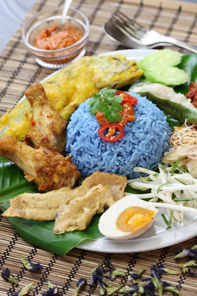 Apa jangan2 nih nasi dimasak pake blao yah. Warna biru nasi terhasil daripada kelopak bunga telang yang digunakan dalam masakan. Theres 2 popular variation Nasi Ulam on the northwest Peninsular Malaysia and Nasi Kerabu with rice dyed blue on the northeast Peninsular Malaysia in state of Kelantan and Terengganu.