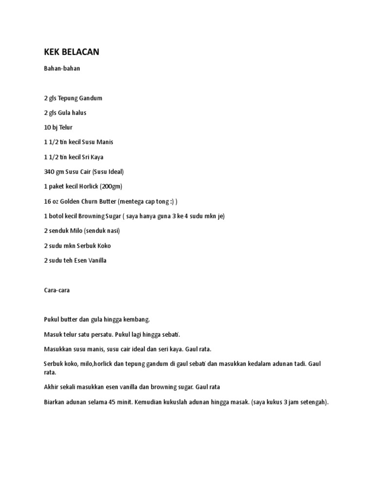 10 biji telur 400gm mentega 1 tin susu manis boleh kurangkan 1 tin kecil seri kaya 2 sudu besar serbuk koko 1 12 gelas gula saya kurangkan sebeb tak nak manis sangat 2 12 gelas tepung gandum ayak 1 gelas horlick 1 botol kecil browning sugar kira-kira 4 senduk nasi 2 sudu makan ovalette sedikit esen. Masukkan garam gulaserbuk perasa dan asam keping. Masukkan gula Melaka belacan bakar air asam jawa dan air.