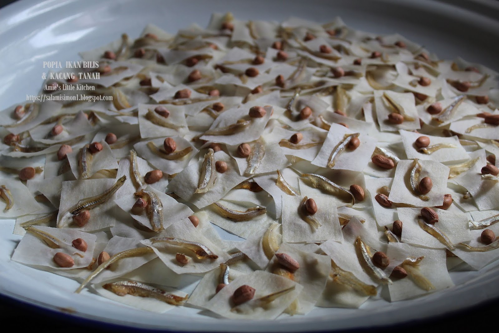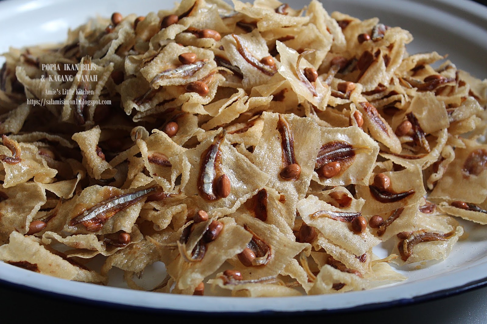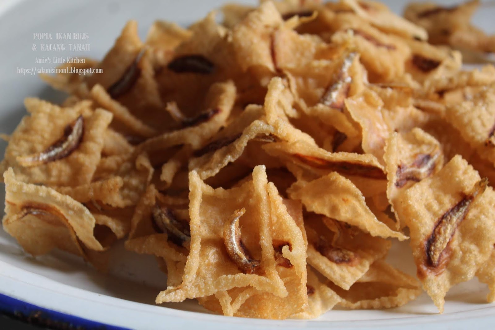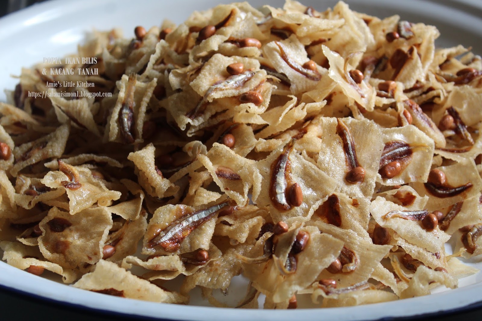 Guna acuan yang telah direndam dalam kuali bersama minyak yang betul panas. Bahan bahannya juga terdiri daripada empat bahan sahaja kulit popia ikan bilis kacang dan tepung gandum. Anda boleh eksperimen adunan sampai sesuai dan ngam.