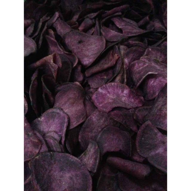 Ubi Keledek Goreng saiz hidangan 1 keping atau bersamaan 50 gram. Another new Mister Potato Crisps product by MAMEE made using purple sweet potato powder including soy and milk. Susunkan hirisan ubi keledek di atas kertas minyak dalam satu lapisan.