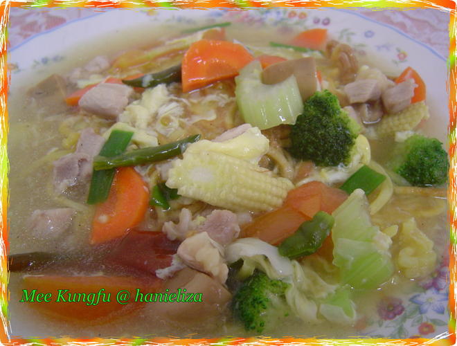 Kuey Tiow 1 pkt Telur 2 biji Tepung Ubi 1 Tsp Garam 12 tsp Minyak Bijan 1 tsp Untuk Kuah. 200 gram isi kerang. Resepi Mee KungFu Assalamualaikum Hari ini kami berkongsi resepi mee kung fu yang bagi sesetengah orang seolah-olah menjadi keras tapi ianya benar-benar mudah untuk menyediakan kepada mereka.