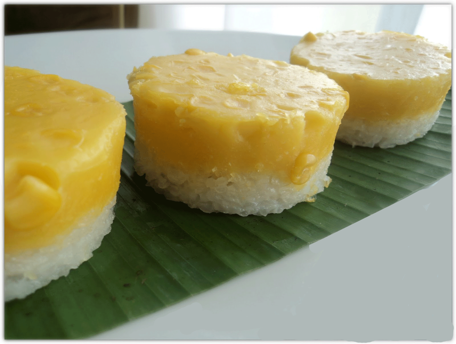 Bahagian atas diperbuat daripada santan putih dan bawahnya pula perasa pandan. Pukul mentega dan krim keju hingga kembang. 2 cawan cornflakes diramas halus.