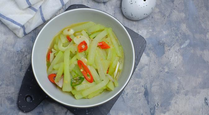 Tiriskan ikan dan labu yang sudah direbus.