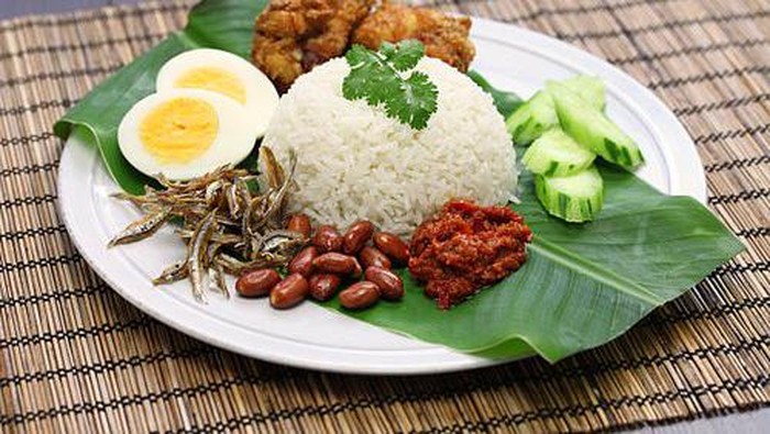 Nasi lemak dimasak dengan santan dan daun pandan beserta beberapa rempah lain sehingga menghasilkan cita rasa nasi yang gurih Biasanya nasi lemak ini disajikan dengan beberapa lauk pendamping seperti ayam goreng telur rebus ikan teri kacang goreng irisan mentimun sambal dan kerupuk Kalo di Indonesia nasi lemak ini mirip. Bahan A Untuk Nasi 1. At this time we remember our mothers cooking Nasi Lemak that must smell Pandan leaves right.