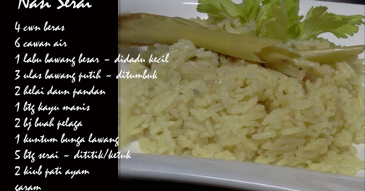 3 cawan berasmathi 1 sudu besar serbuk jintan manis 8 batang serai dititik 15 20 ekor udang saiz besar 1 biji bawang besar dikisar 3 4 ulas bawang putih dikisar 1. Bahan-bahan - 3 sudu minyak zaitun - 6 ketul peha ayam - garam. Sheila Rusly dilihat selalu menaik muat pelbagai jenis resipi.