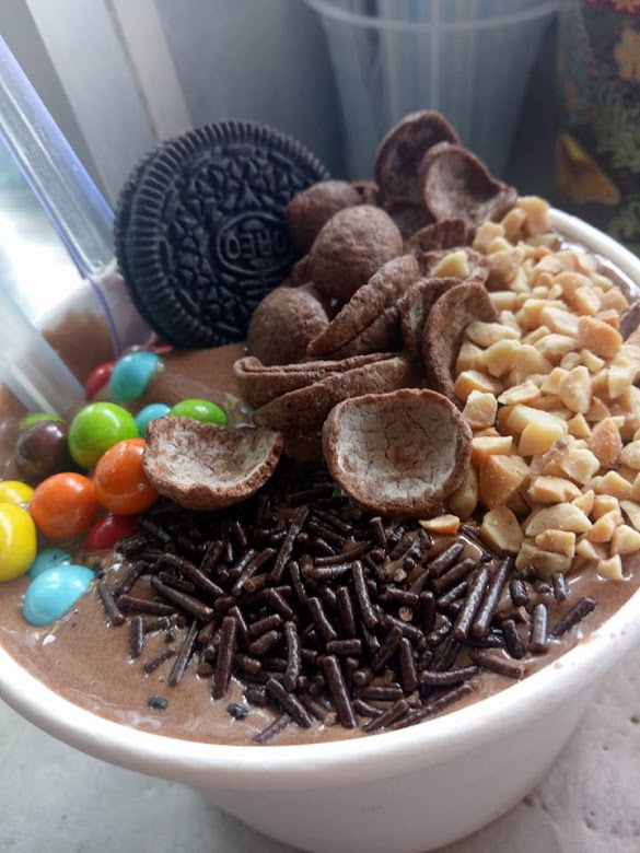 Masukkan 1 cawan milo dan satu sudu serbuk koko ke dalam mangkuk. Masukkan ais kepal tadi ke dalam mangkuk. Susu cair secukup jika terlalu kental saja Note.