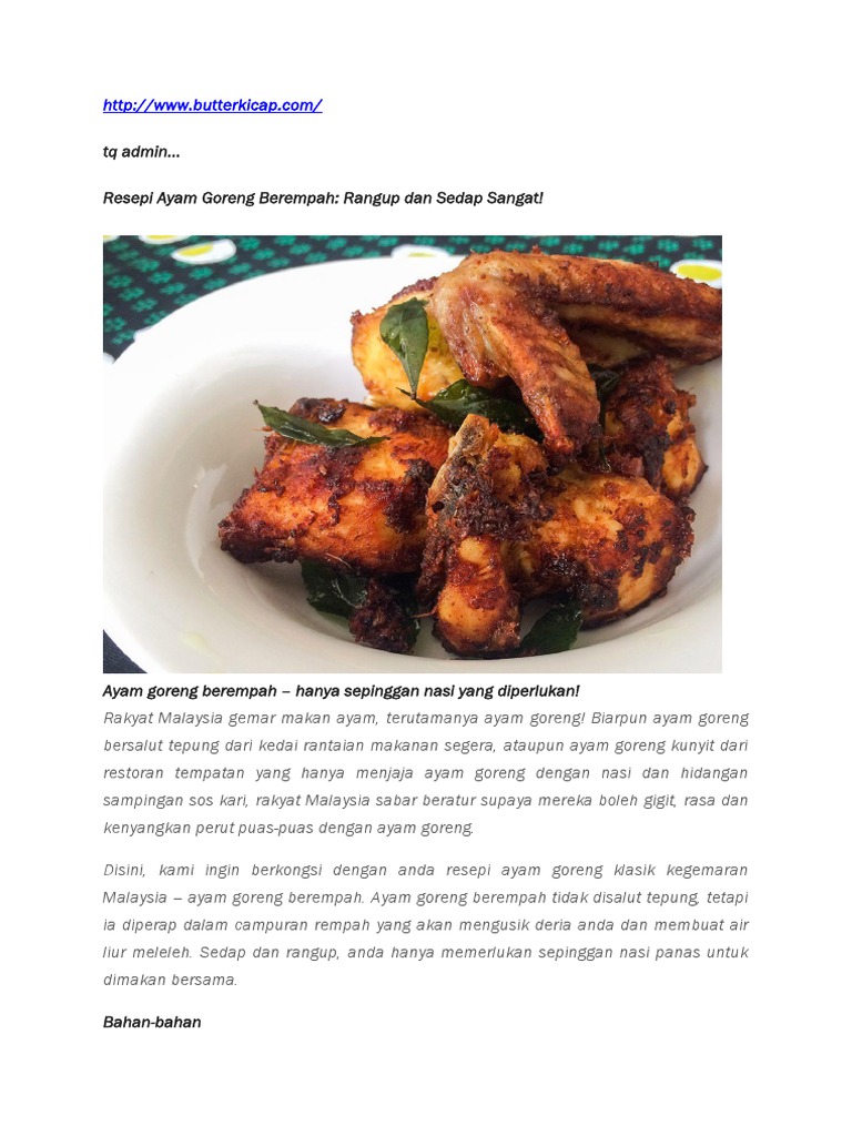 3122020 Nak buat ayam goreng ni banyak je resepi yang korang boleh googletapi umi senaraikan 7 resepi ayam ayam berempah yang mudah dan sedap untuk korangYelah bulan puasa nak dekat ni mesti banyak menu yang korang cari kanSo untuk senangkan korang meh umi senaraikan resepi dari menu ayam berempah simple yang korang boleh ikut. Tapi saya tak mahulah menggunakan resepi biasa yang menggunakan bawang bukan apa tak tahan melihat minyak nya yang menjadi hitam. Tutup dan simpan dalam peti sejuk sekurang-kurangnya 2 jam atau sebaik-baiknya semalaman.