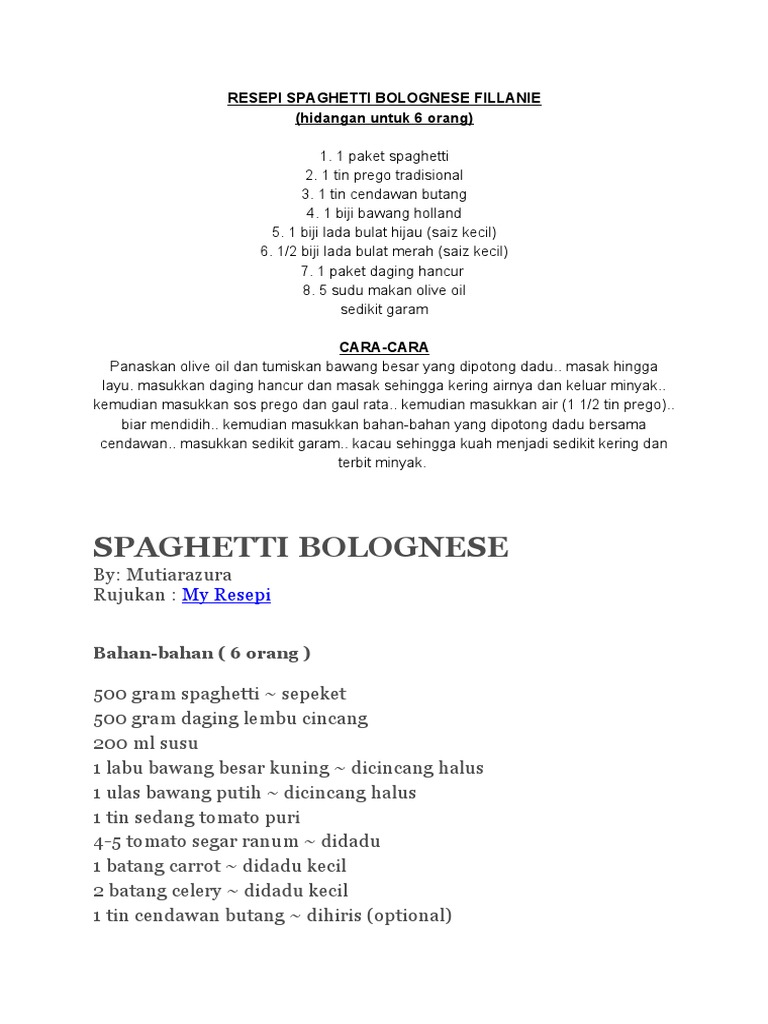 Spaghetti bolognese prego memang sedap. 1 ikat daun sup dan daun bawang. 5302018 Resepi Spageti BologneseBAHAN BAHAN200gm Spaghetti direbus1tin sos spaghetti 3 biji bawang putih 1 biji bawang besar200gm daging cincang4 biji cendawan butan.