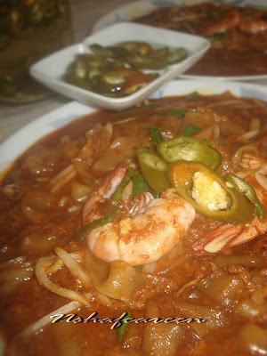 Klu ada cili jeruk lg sedap musim kerang skrg isi dia penuh2resepi dibawahplg ringkas. 1 mangkuk hirisan daun kucai dan tauge. Bila air mendidih masukkan kuey teow kucai taugeh dan kacau rata.