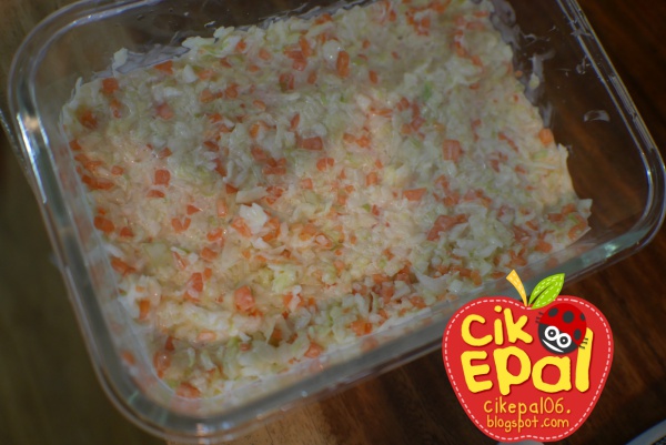 Masak dalam rice cooker sehingga air hampir kering buka penutup rice cooker dan tuang santan pekat atau santan kotak. Kacau rata dan bila tak berketul baru buka api. Resipi sedap dan mudah untuk Coleslaw.