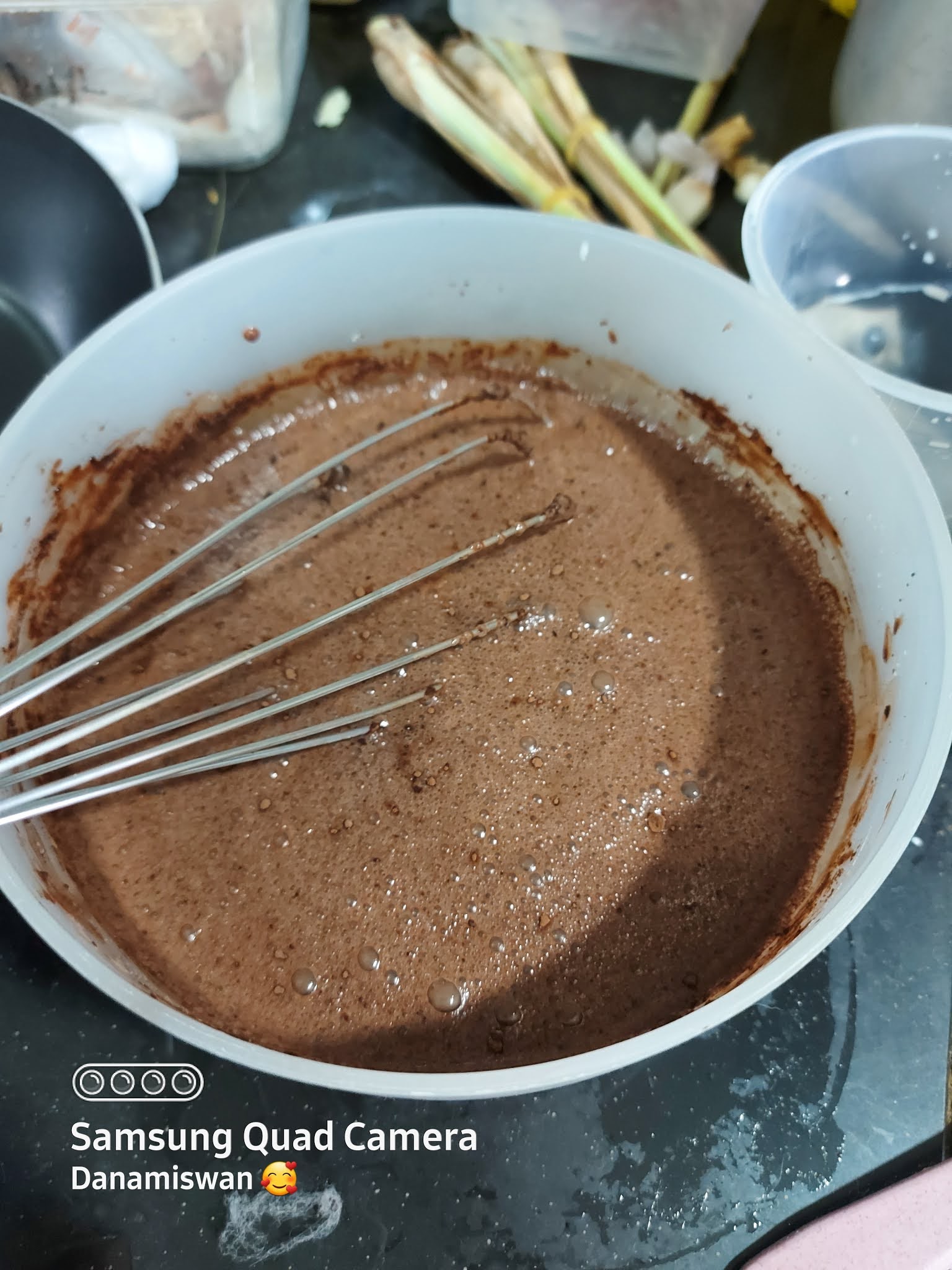 12 cawan minyak masak. 1-2 sudu makan serbuk coklat jangan letak banyak nanti pahit. Masukkan coklat dan mentega cair tadi kedalam adunan telur dan gula yang dipukul.