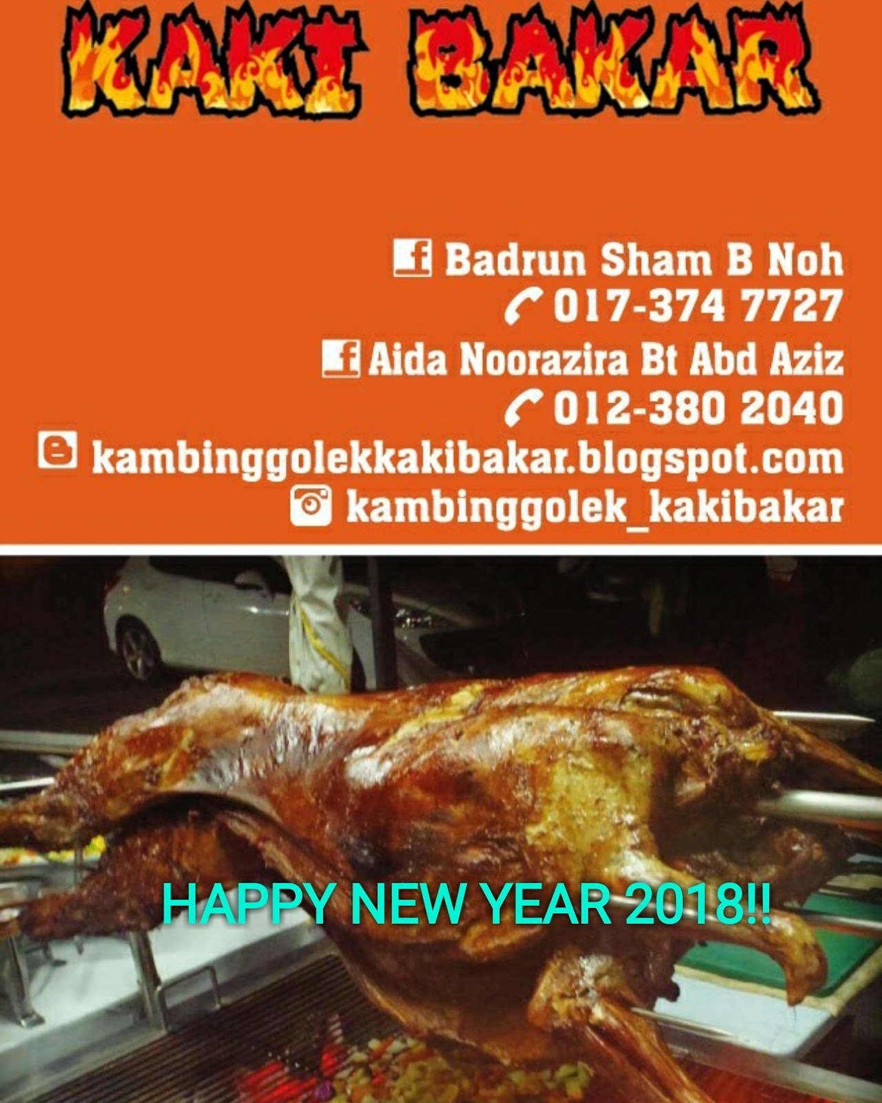 Patutla ramai je tempah Kambing Bakar dengan diorang. Sila cuba resepi kambing golek untuk seekor kambing berat 15 kg. Anggarannya bagi seekor kambing setelah di proses sehingga sesuai untuk dijadikan kambing golek - 17KG.