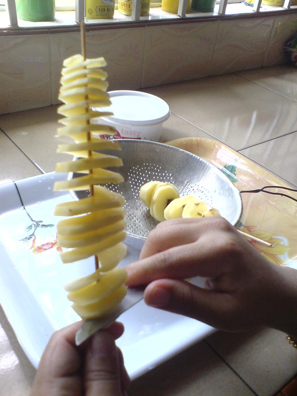 Resepi Ubi Kentang Tornado. FREE Delivery FREE Lidi Plastik Pembungkus Resepi. Kentang cuci bersih dan buatkan lubang sbesar sosej kemudian hiris membentuk spring.