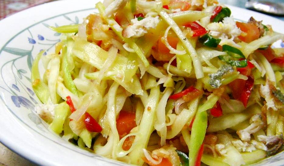 5292017 Bahan-bahan Resipi Kerabu Mangga Ala Thai. Kalau nak letak sos ikan nampla pun boleh sahaja cuma hati-hati bila masukkan garam kerana sos ikan pun dah ada rasa masinnya. Sebiji kecil kelapa parut sangai macam hendak buat kerisik tapi jangan sampai warna coklat gelap sangat.