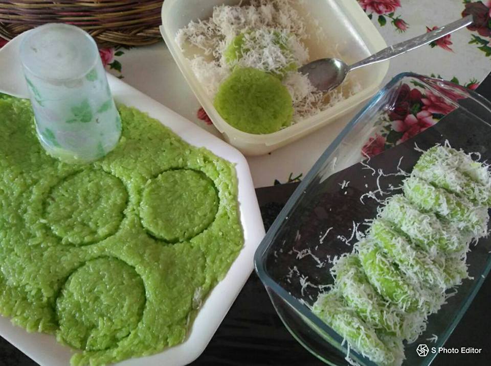 11282019 4 cawan santan santan pekat 1 biji kelapa dicairkan kepada 4 cawan 1 sudu teh garam Bahan-bahan 2 Pewarna merah Pewarna hijau Pewarna kuning Perisa pandan Cara-cara Kisar kesemua bahan bahan 1 sehingga sebati dan tuang ke dalam 6 cawan. Masukkan sedikit merah ke dalam satu cawan tadi.