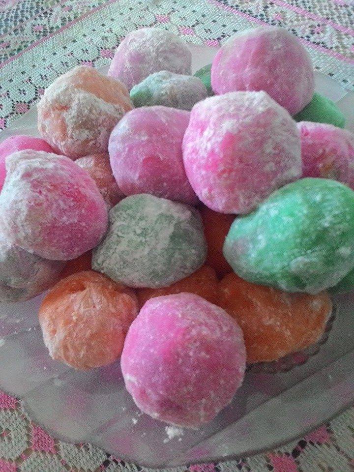 Glutinous rice flour 2 cwn Corn flour 2 sb Sugar 12 cwn Coconut milk 1 small box 200 ml Cooking water 12 cwn Vanilla Esen 1 sk some glutinous rice flour diced to salute mochi A little Dye credit norhaslinda hasan. Kuih Tepung Gomak-----Kuih tradisi yang digemari. Walaupun saya pernah beberapa kali menyediakan kuih kaswi di SINI dan di SINI namun resepi kali ini lebih istimewa kerana ianya adalah salah satu resepi kuih tradisional yang dikongsikan oleh Kak Sharifah Lok.