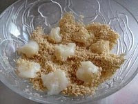 Masukkan dalam kacang tumbuk yang siap digaul gula. Lower the heat and continue to toss and cook the dough for another 3 - 5 minutes depending on the heat till the dough is smooth and slightly transparent on its surface.