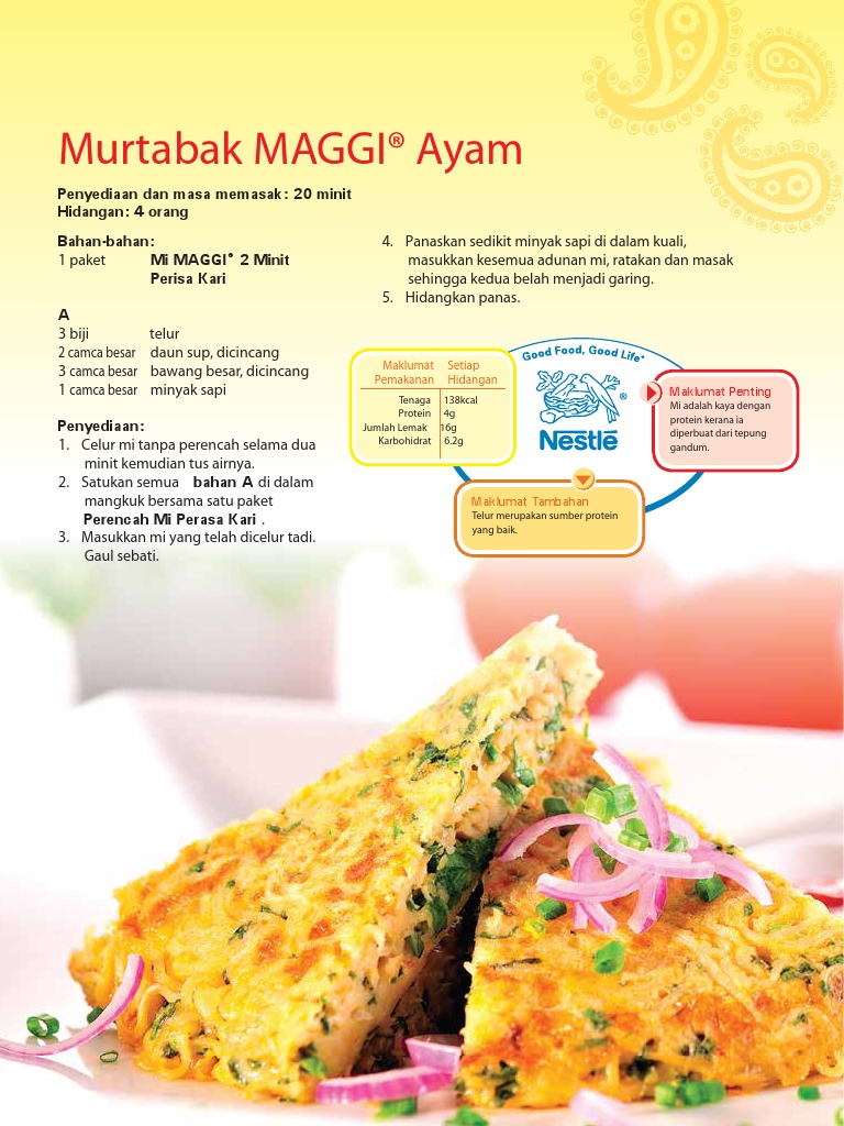 Ia mempunyai kandungan karbohidrat protein dan serat yang melengkapi keperluan badan seperti yang disarankan dalam piramid makanan agar badan anda bertahan sepanjang hari berpuasa. Resepi MAGGI Mi Kari Goreng Mamak. Terima kasih kepada Puan Shai Anne Ahemed di atas sumbangan resepi murtabak maggi ini.