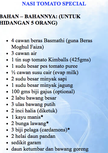 Resepi Nasi Tomato Imej via Facebook Bahan bahan. Tapi Kjee tak beranilah bubuh soup tomato seperti yang disarankan oleh Roshan. Hehe nanti sonang.