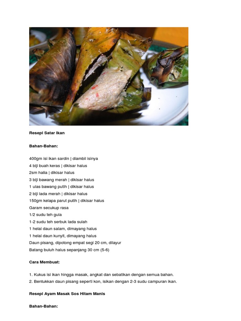 Masukkan ke dalam santan dan dimasak dengan api kecil hingga menggelegak. Resepi satar ikan ini kiriman Cik Azriey Amrie. PJJ CICAH CICAH RM10 - Tauhu Bunga - Tauhu Berlauk - Popia Satar - Bubur Lambuk Terengganu - Homemade Colek - Sambal Kicap 9.