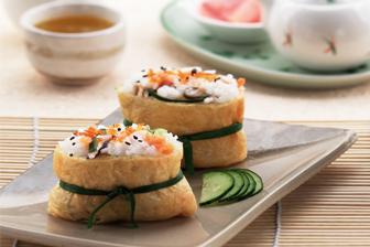 Resepi sushi inari. 200 g beras jepang butir pendek beras putih pulen cuci bersih. - 15 tahu pong bisa tahu lain yang bisa diambil kulitnya - Nasi secukupnya - Salmon secukupnya - 2 butir telur goreng dadar dan potong-potong - 350 ml air - 3 sendok makan gula - 10 sendok makan kecap asin - 2 sendok makan wijen. Panaskan kulit tahu 30 detik.