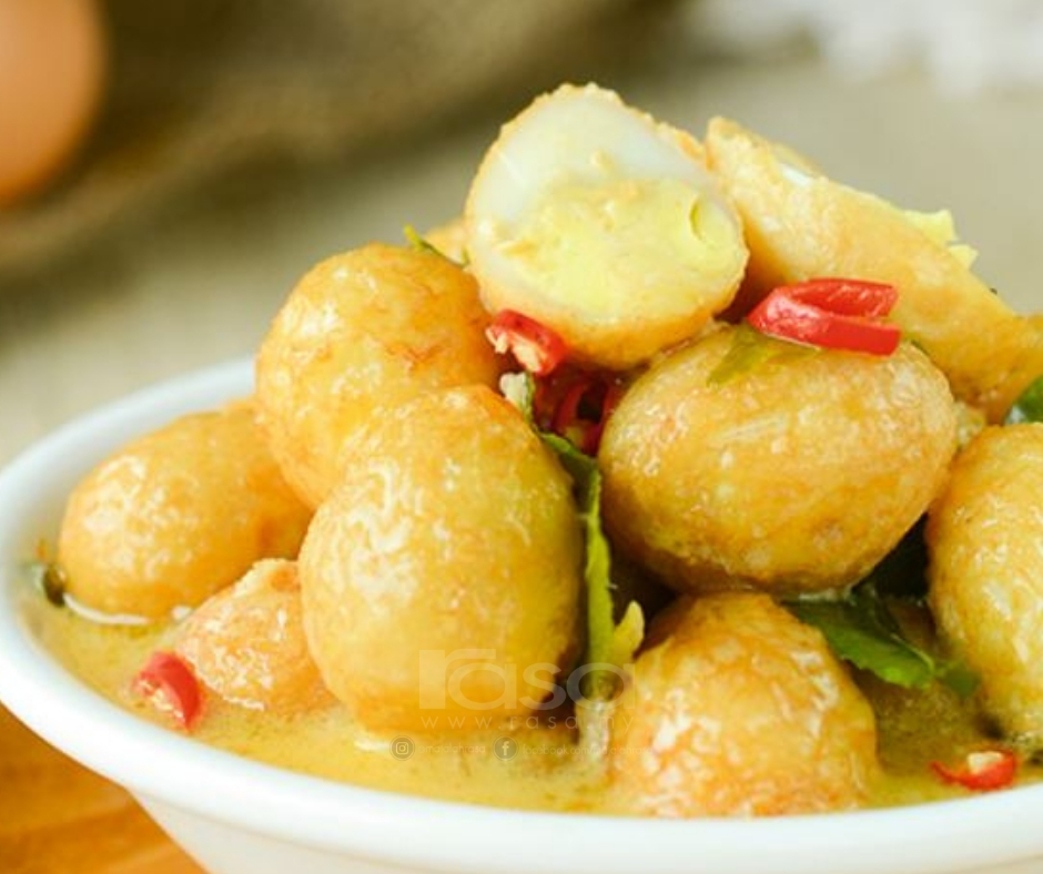 Akhir sekali masukkan telur. Masukan tahu telur puyuh cabe rawit dan larutan santan. Ubi kentang 4 biji belah 4.