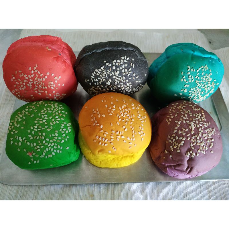 Roti burger black wijen Deroti isi 6. Deskripsi Roti Burger Warna Warni. Tortilla Crispy Warna-Warni Mini Merah Kuning Hijau Hitam Harga.