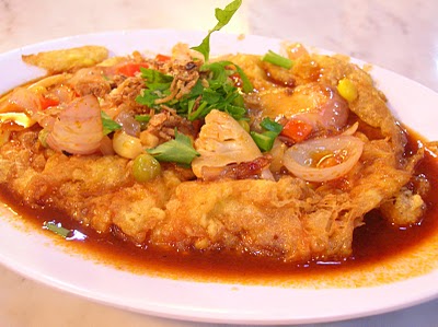 Asasnya tetap telur dadar cuma dia berkuah dengan isi ayam dan sayur campur. Dikenali juga sebagai Indonesian omelete. Set Ada 16 pax lauk sehari Ambil 2-3 pax lauk.